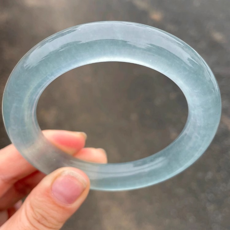 天然獨龍玉冰飄花手鐲 冰種翡翠色飄藍花玉鐲子高冰網紅女款飾品