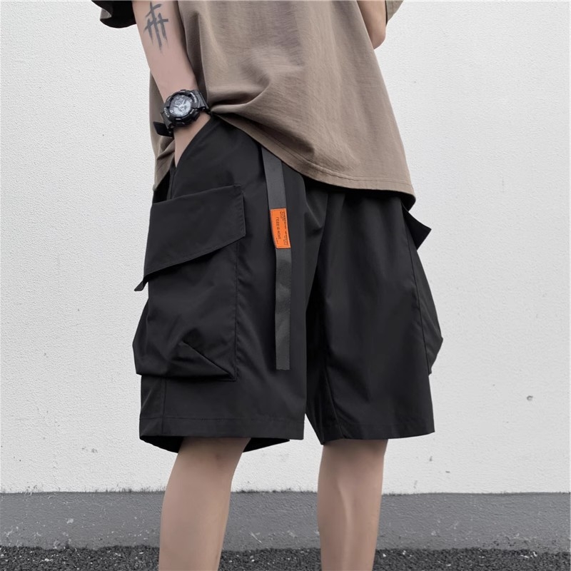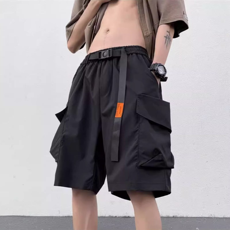 機能黑色工裝短褲男士夏季薄款寬松休閑男生中褲美式男款5五分褲