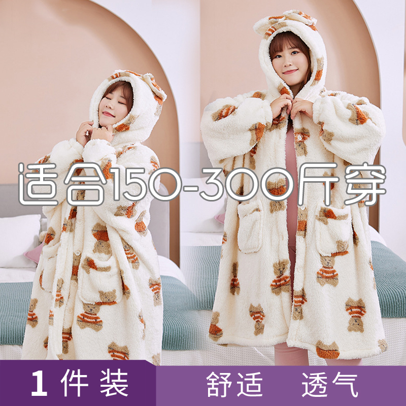 大碼冬季孕婦睡袍連帽長款200斤產后保暖睡衣月M子服浴袍300斤胖m