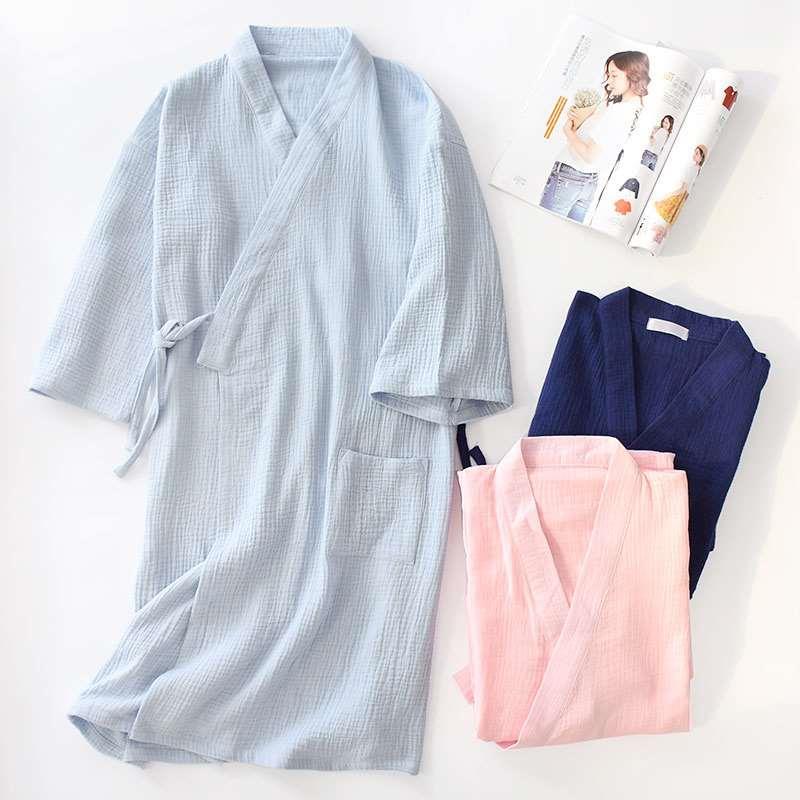 日式月子服春夏季純棉縐布家居哺乳睡衣睡裙全棉水洗紗布孕婦浴袍