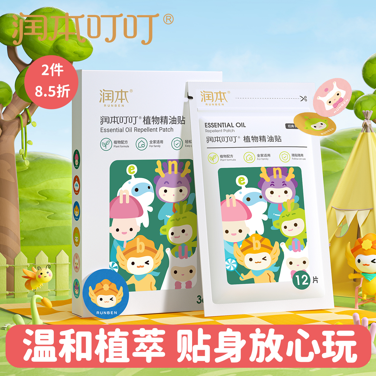 潤本嬰兒植物精油貼兒童卡通貼幼兒園學生戶外寶寶貼防蚊水驅蚊液