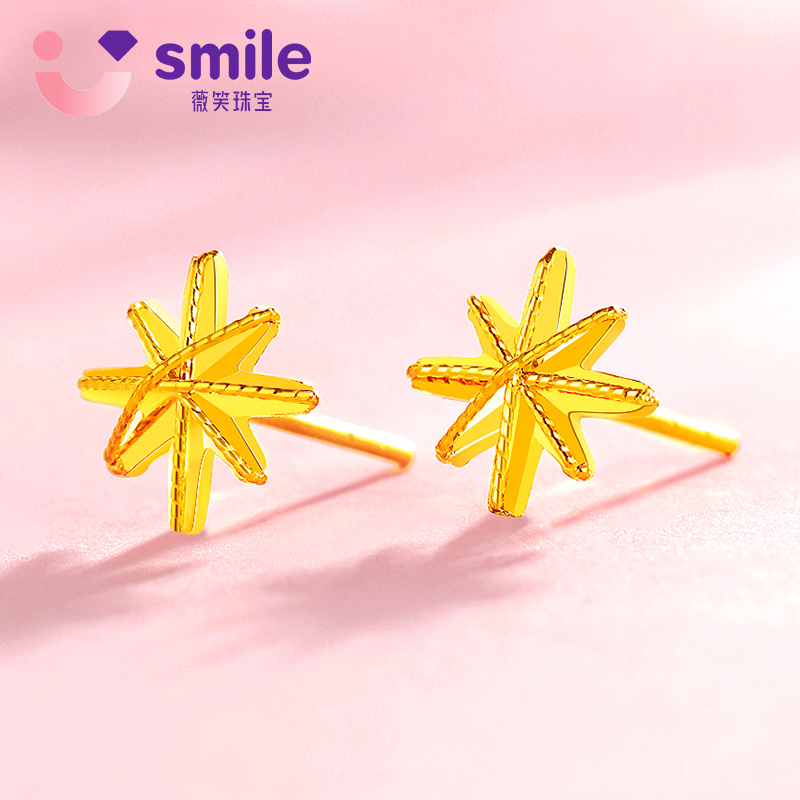 黃金六芒星耳釘999足金定價耳吊七夕送女友老婆金情人節禮物