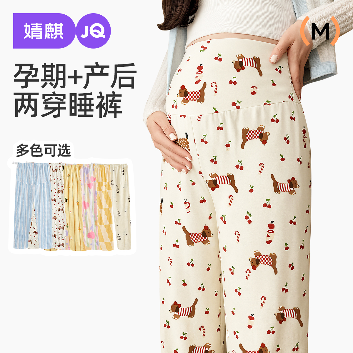 婧麒孕婦睡褲不勒肚子夏季孕期孕婦褲可外穿大碼休閑家居褲托腹褲