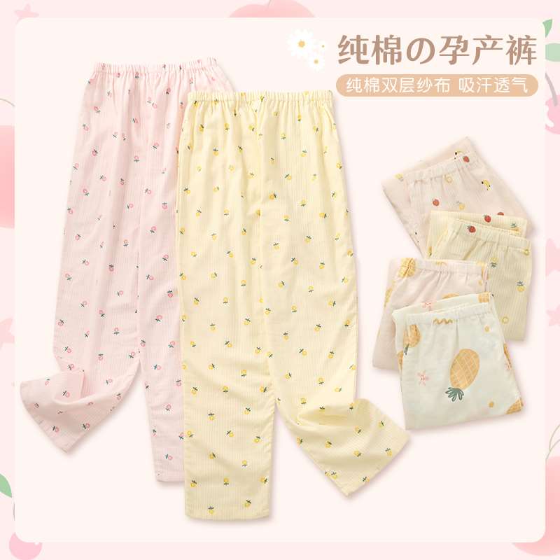 富朵純棉孕婦睡褲春夏薄款家居褲紗布產婦褲子懷孕期孕晚期可調節