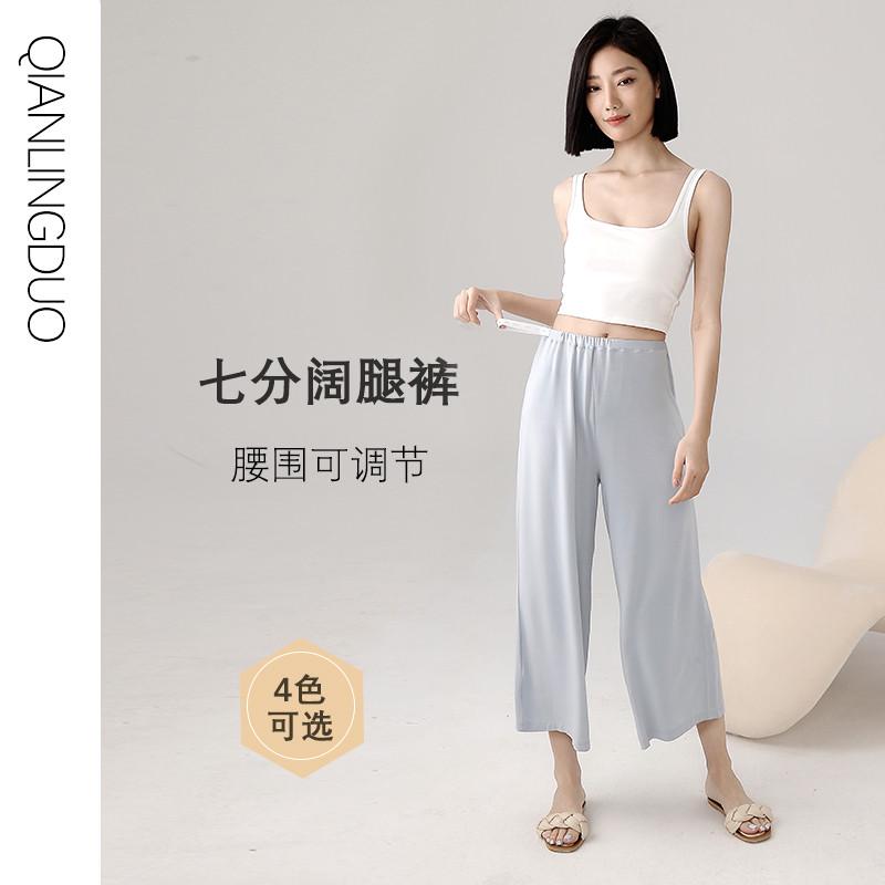 千凌朵孕婦睡褲夏季居家寬松不勒肚闊腿褲蘭精莫代爾可調節七分褲