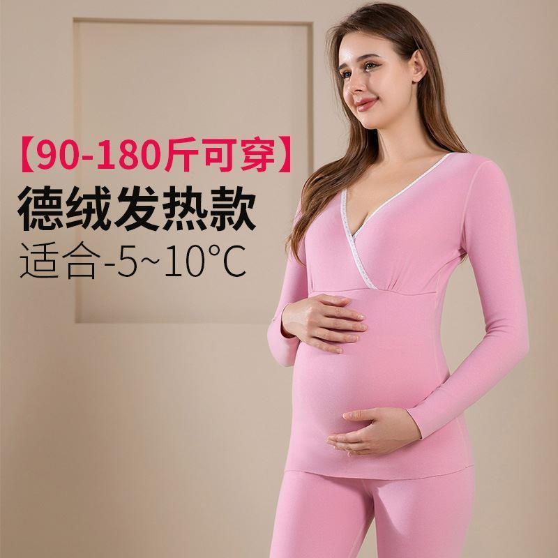 孕婦加絨加厚保暖內衣秋衣秋褲套裝德G絨加大碼200斤產后哺乳上衣