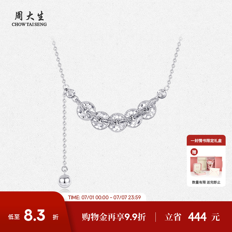 周大生五帝錢幣鉑金項鏈女pt950錢途閃亮流蘇項鏈生日禮物送女友