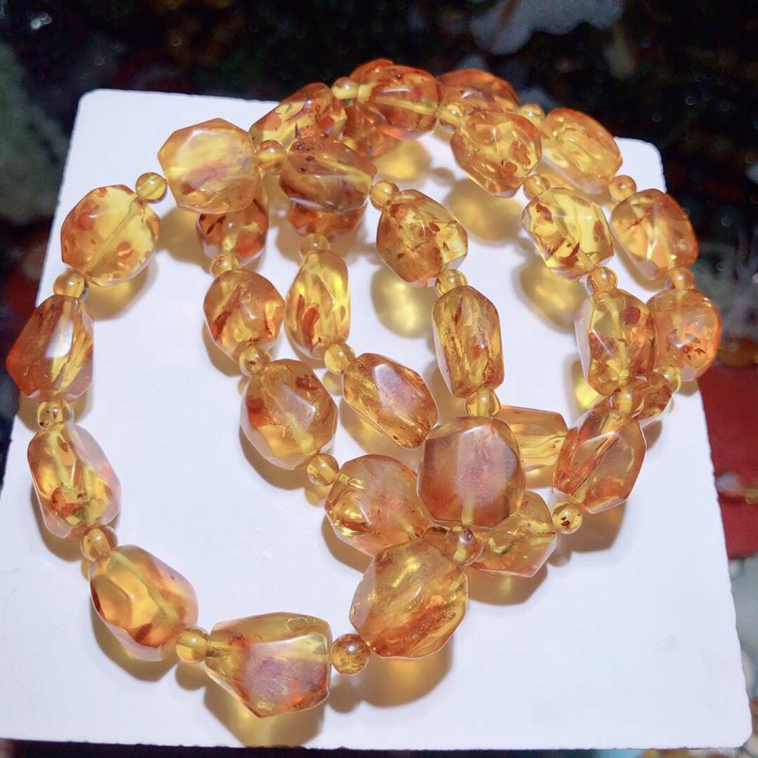 天然西亞回流老蜜蠟棗珠桶珠古董手串手鏈保真帶地質大學鑒定證書