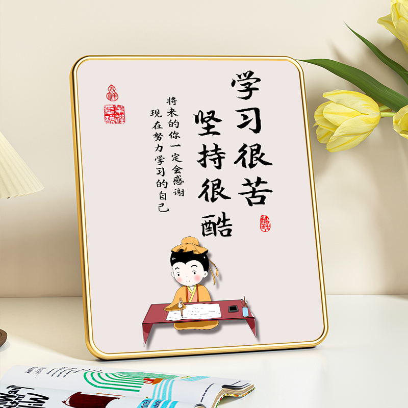 學習很苦堅持很酷擺件學生勵x志牌畫框書桌上孩子激勵自律桌面擺