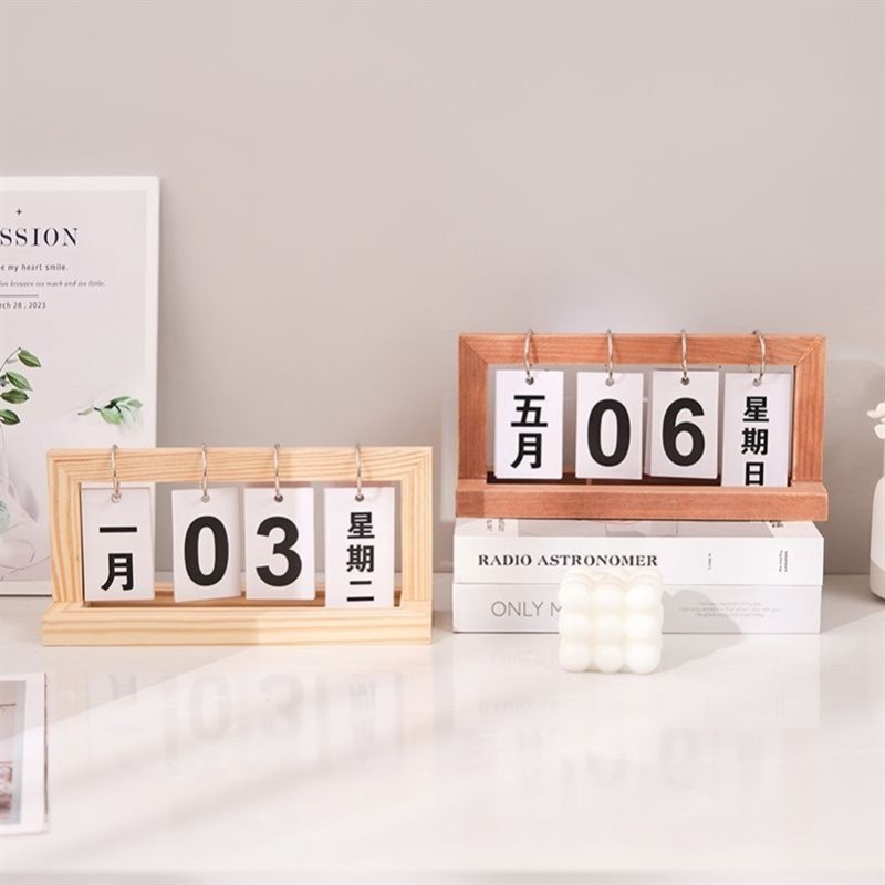 2024翻頁日歷擺件創意木質臺歷日期牌餐桌面擺設玄關拍照拍攝道具