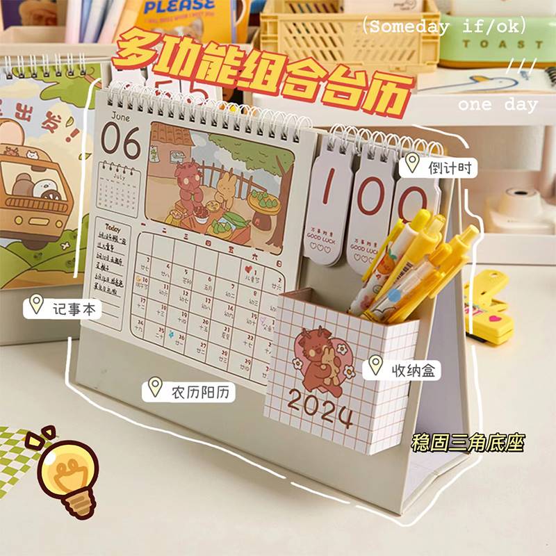 2024年新款多功能筆筒臺歷可愛辦公室桌面擺件勵志考研打卡計劃本