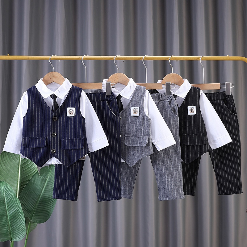 1-5歲韓版兒童領帶西裝馬甲三件套童裝男童條紋西服背心禮服春裝