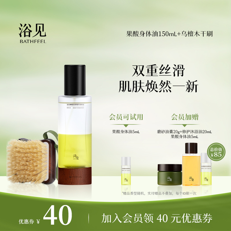 浴見果酸身體精華油溫和保濕嫩膚香氛身體油+烏檀木浴刷洗澡刷