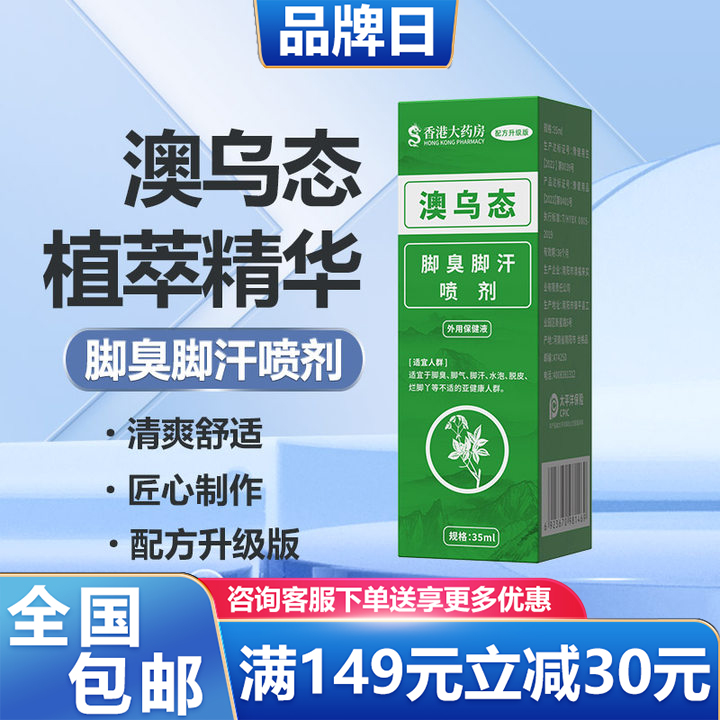 澳烏態噴液腳臭抑菌除臭去腳汗腳氣異味皮膚外用男女通用官方正品