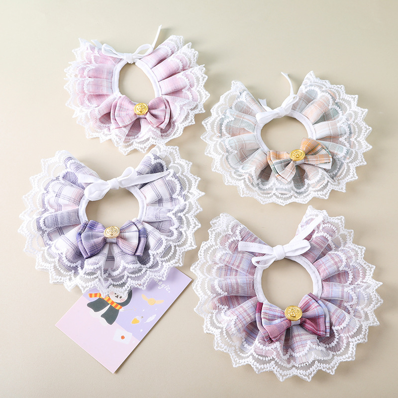 寵物口水巾貓咪蝴蝶結蕾絲邊項圈狗狗可愛公主風裝飾圍脖用品