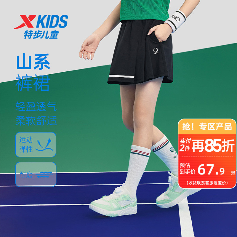 特步童裝兒童網球運動裙子夏季新款女童柔軟透氣褲裙中大童半身裙