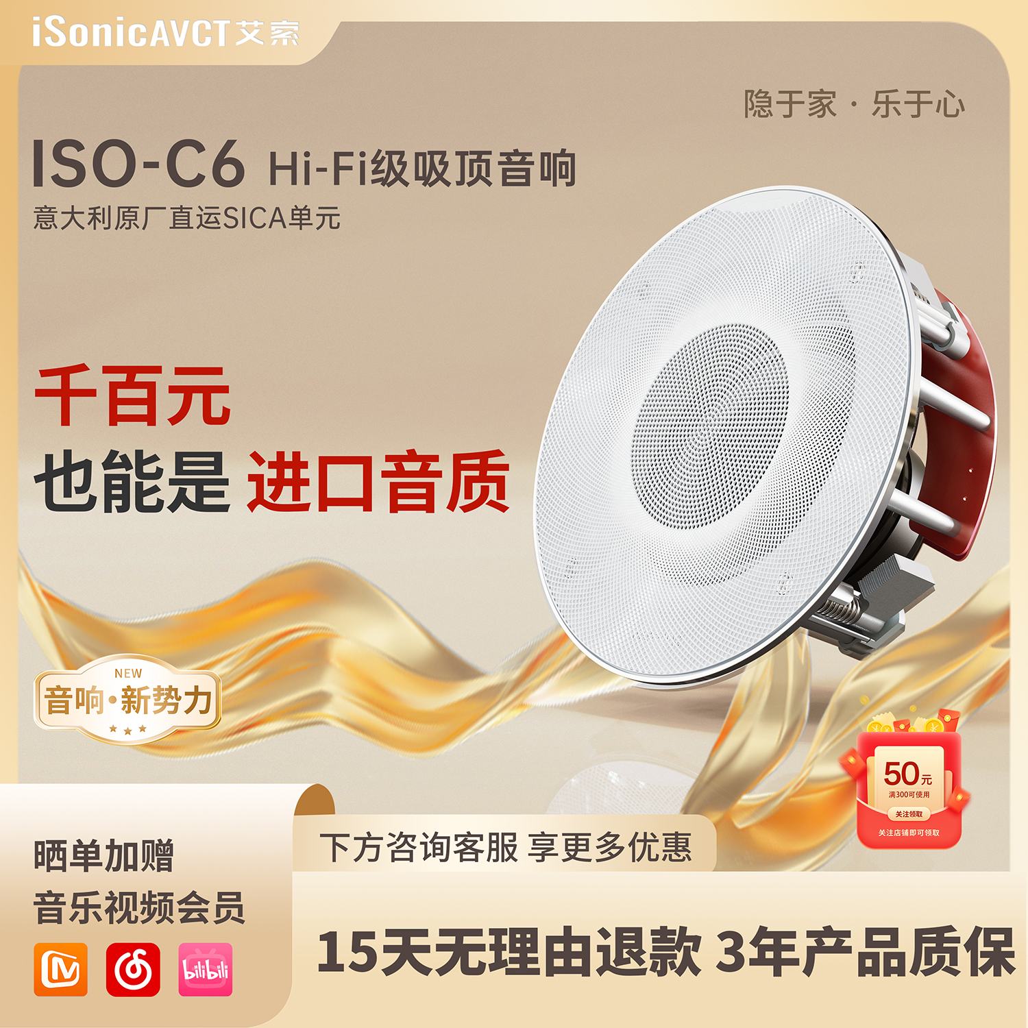 艾索C6吸頂音響新款藍牙家庭影院家用客廳天花吊頂喇叭嵌入式音箱