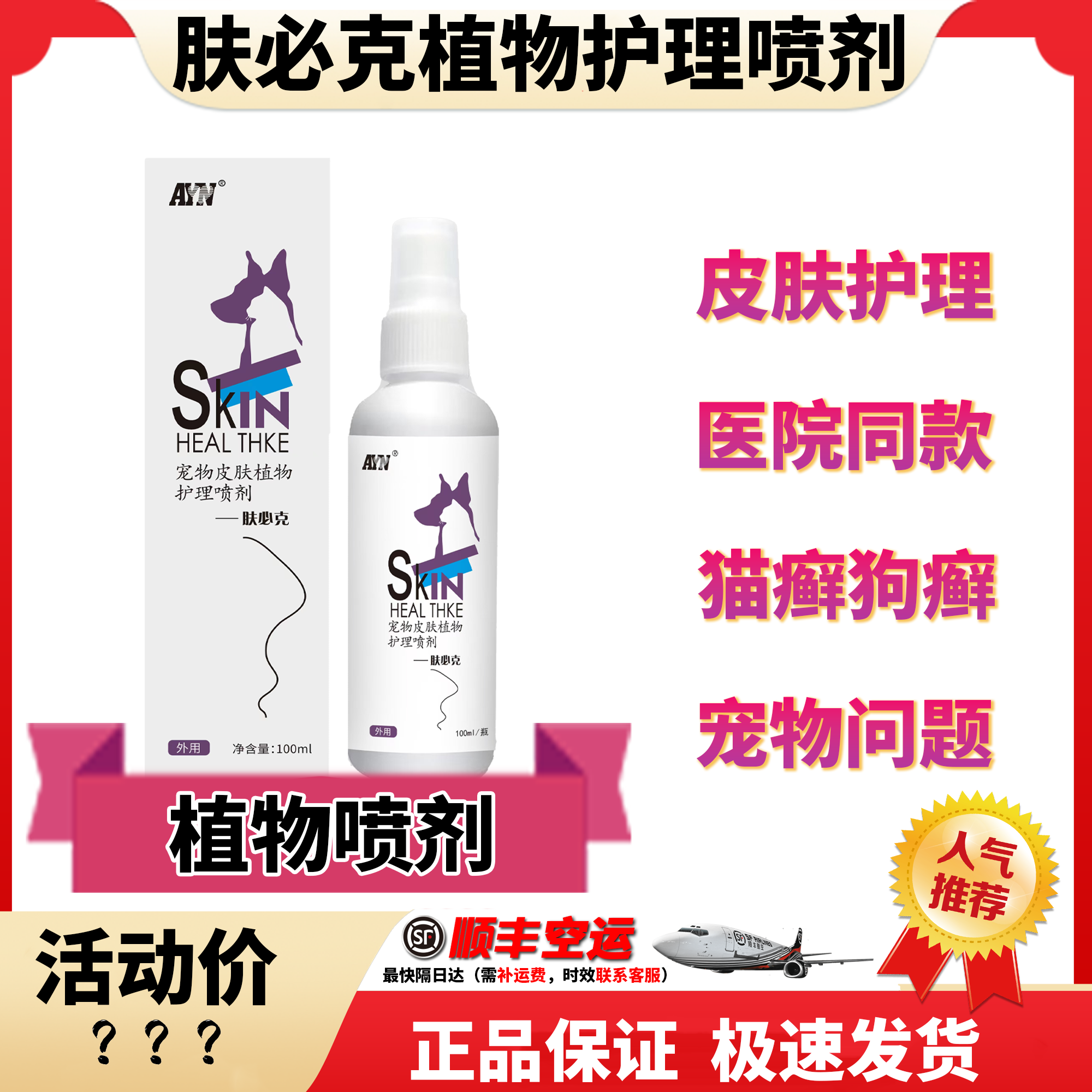 皮炎安噴劑100ml犬貓咪皮膚病狗狗真菌狗癬皮炎貓癬膿皮癥濕疹