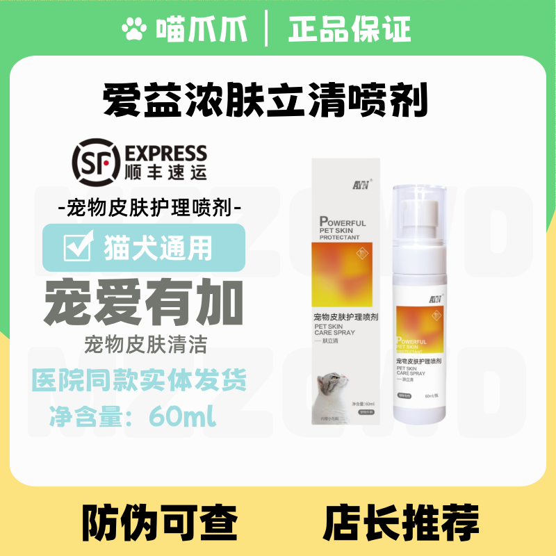 愛益濃膚立清噴劑60ml醫院同款寵主推薦現貨貓狗貓犬通用膚立清