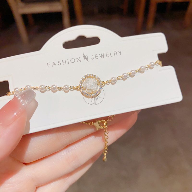 仙女風鋯石白色花朵圓環珍珠可調節手鏈法式ins森系手串閨蜜同款