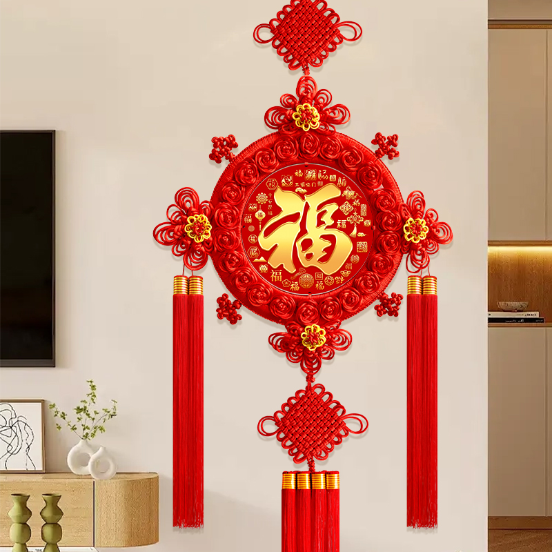 新年對聯客廳掛件中國結掛飾電視墻沙發背景墻玄關進戶門福字裝飾
