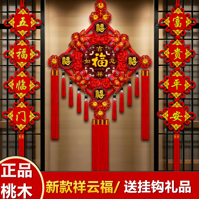 2025新款中國結掛飾福字掛件入戶門客廳影視墻掛件高端新年桃木