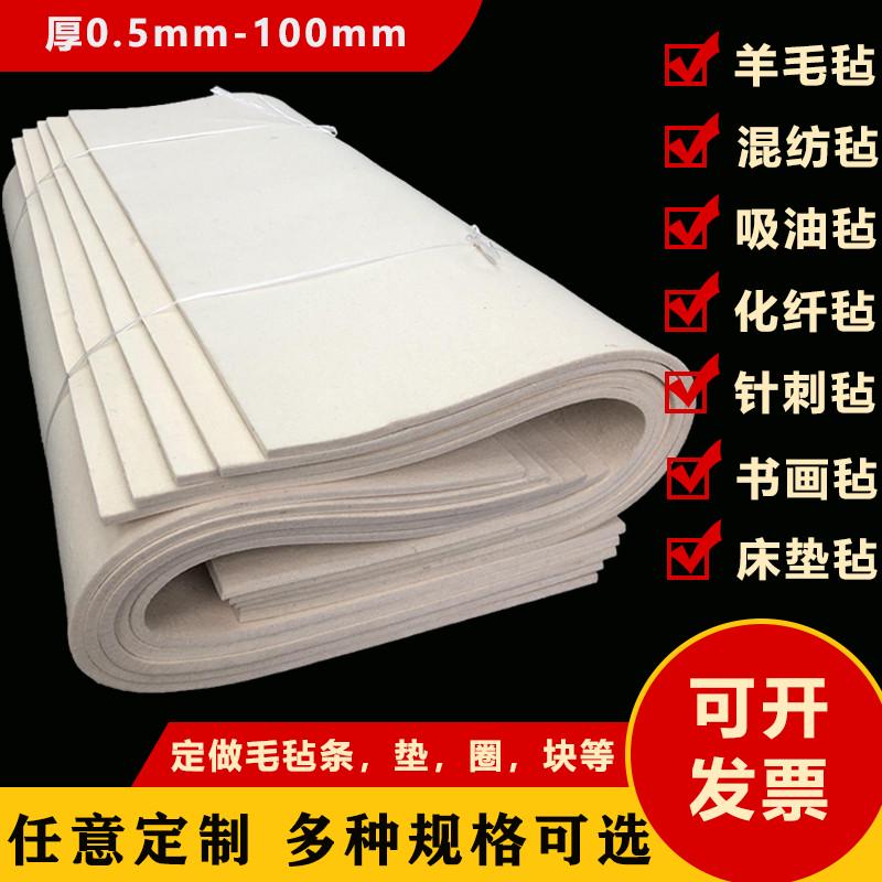 工業毛氈高密度羊毛氈吸油拋光耐磨密封抗震耐高溫墊圈條1-50mm厚