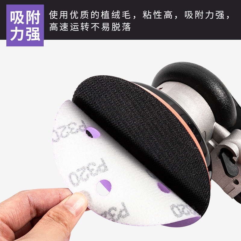 5寸6孔干磨砂紙6寸17孔植絨圓盤紫砂紙方形8孔汽車打磨拋光背絨片