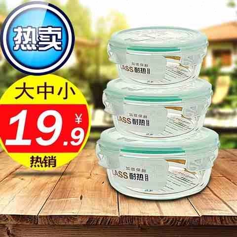 包郵玻璃保鮮盒圓型保鮮碗微波爐專用便當盒飯盒玻璃碗◆新品◆