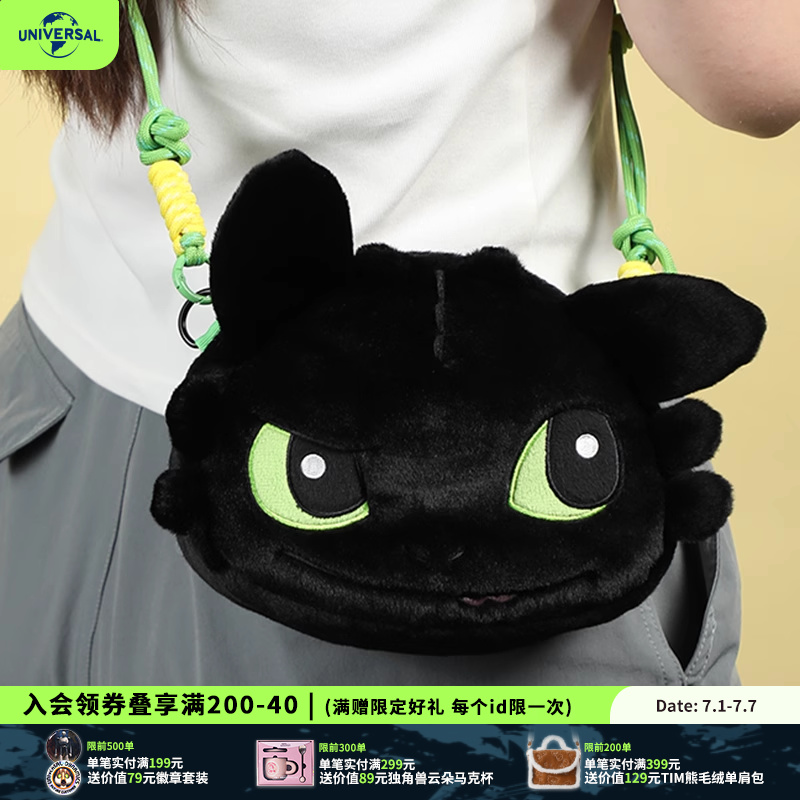 環球影業馴龍高手萌萌沒牙仔毛絨挎包可愛卡通單肩包收納包
