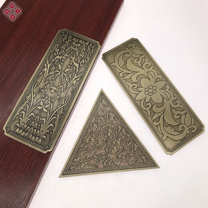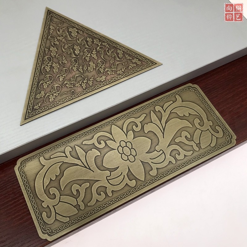 仿古大木門包角純銅鏤空裝飾背景墻面客廳掛件中式家具黃銅貼壁畫