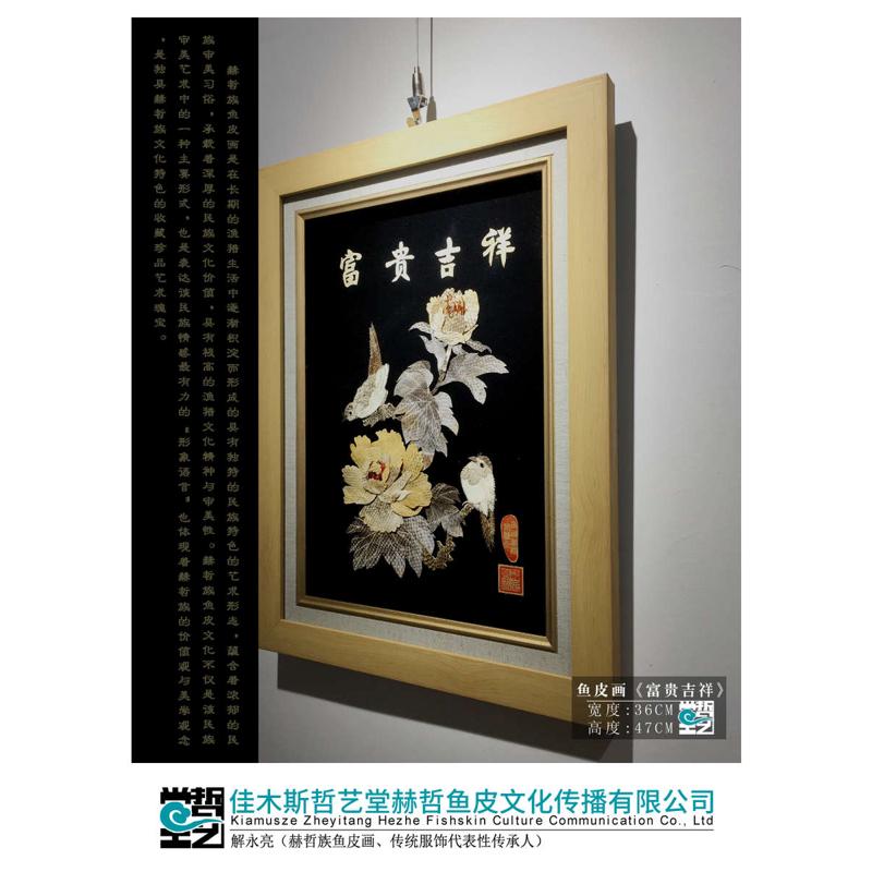 赫哲族魚皮畫 富貴吉祥 解永亮作品 非遺 東北特產手工藝禮品
