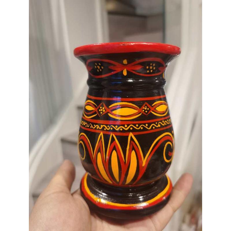 大涼山彝族漆器筆筒紅黃黑實木手繪民間少數民族風特色手工藝飾品