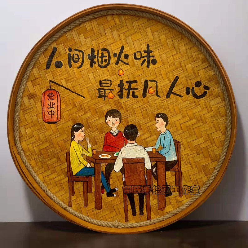 復古簸箕畫市井火鍋冒菜燒烤露營地農家樂飯店墻面懷舊裝飾掛畫