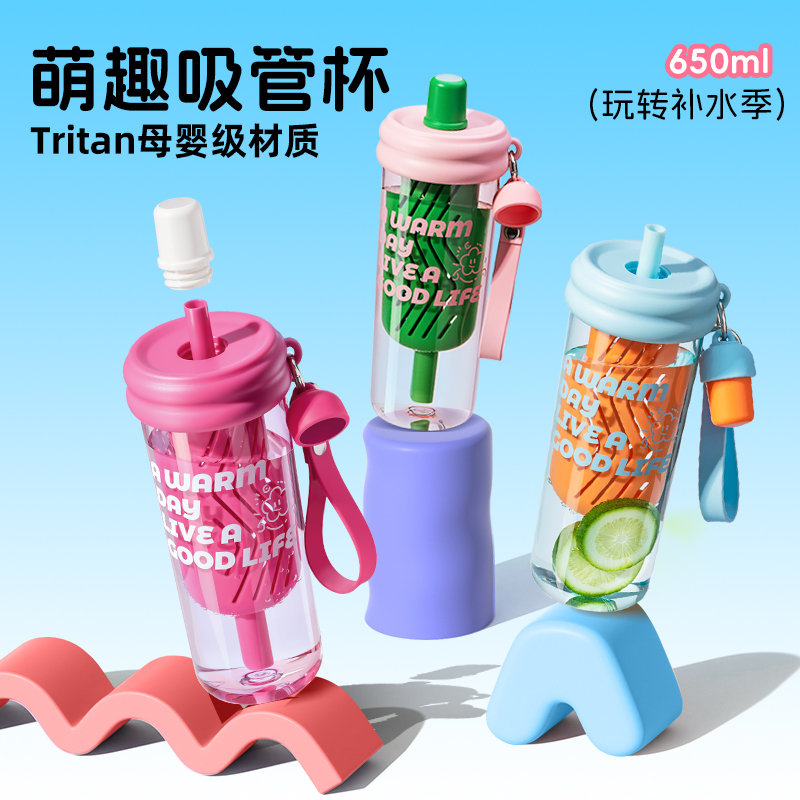 綠珠夏天吸管杯新款可愛果茶杯運動水杯隨行女生大容量耐高溫便攜