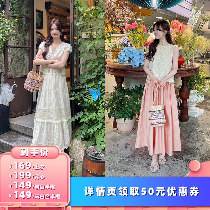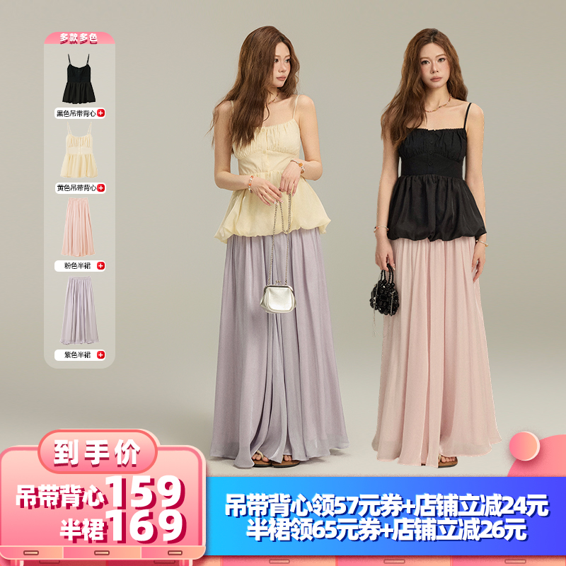 【所有女生的衣櫥直播間】米花家 兩色花苞吊帶背心兩色半身長裙