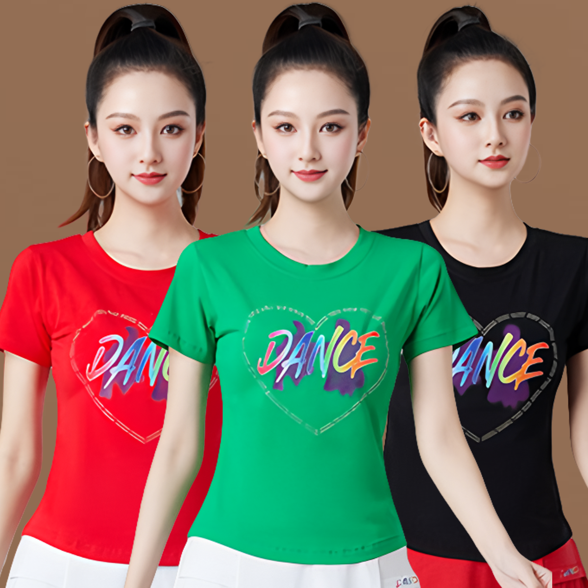 楊麗萍夏季新款棉廣場舞服裝上衣健身休閑顯瘦短袖跳鬼步舞蹈衣服