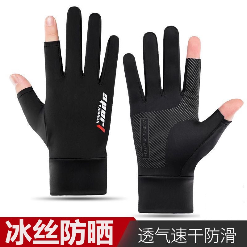 觸屏防曬手套男士女夏季戶外開車運動釣魚薄款防滑騎行冰絲露半指