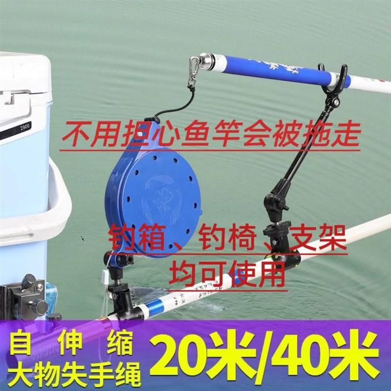 釣椅釣箱多用失手繩80米自動釣魚盒式失手繩魚竿放桿繩伸縮護桿繩
