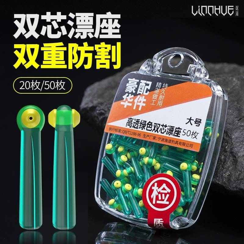 粼湖高透綠雙芯漂座盒裝硅膠競技浮漂座釣魚坐插魚漂浮標座小配件