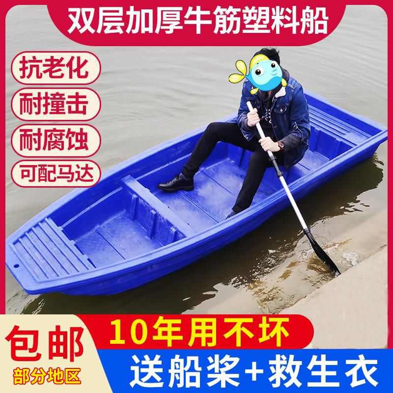 雙層牛筋塑料船漁船小船加厚pe釣魚E船塑膠沖鋒舟橡皮艇可配船廠