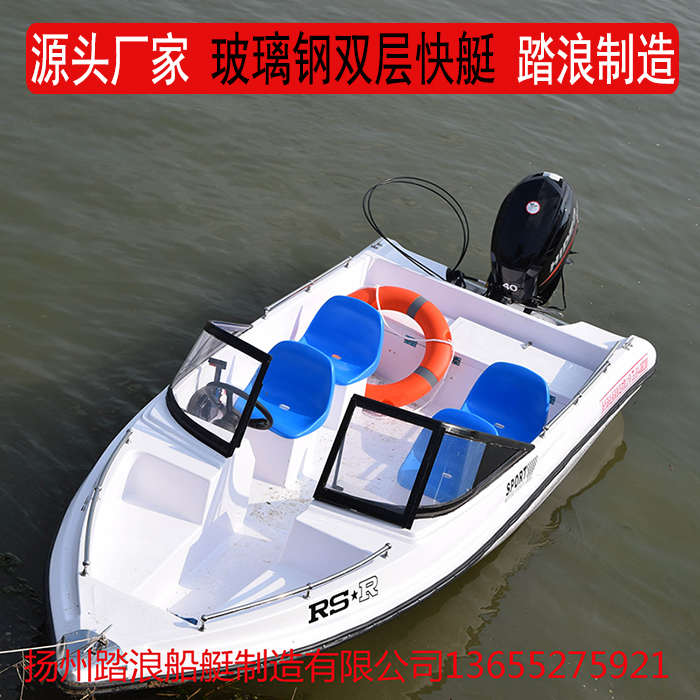 玻璃鋼快艇自排水雙層釣魚船游巡邏艇漁船水上游樂船玻璃鋼海釣船