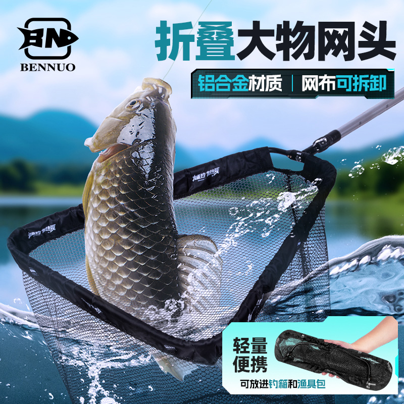 本諾抄網頭可折疊黑坑競技網兜抄魚撈魚網不掛鉤超輕大物抄網全套