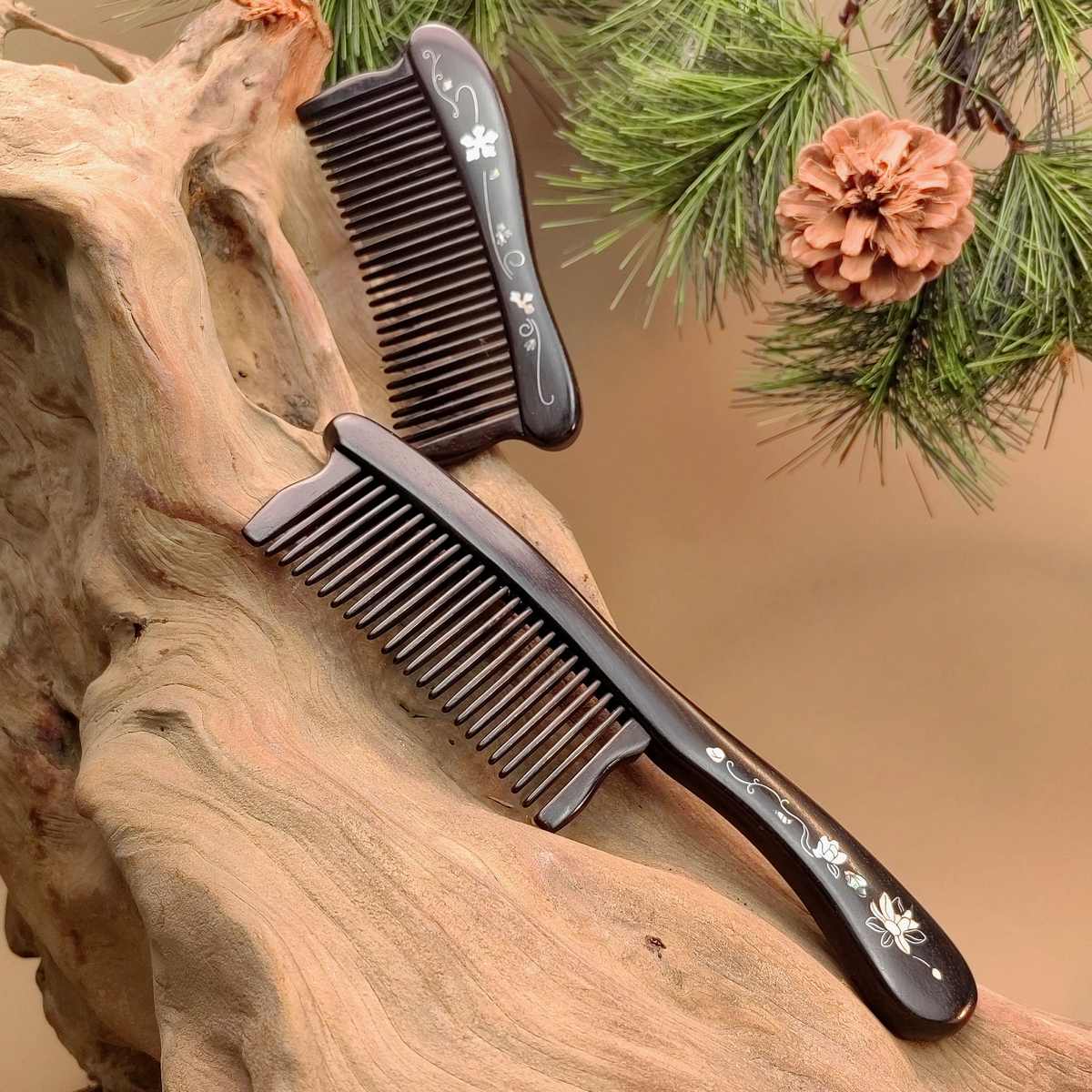 【賣檀翁】高檔彩繪檀木插齒梳 天然鑲齒家用木梳女士長發防打結