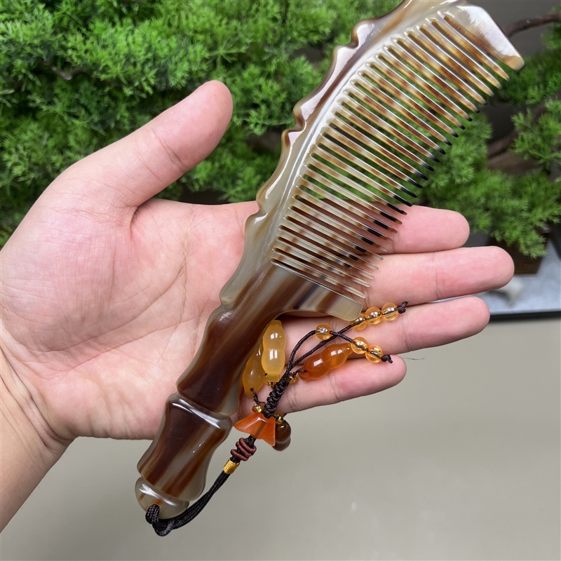 現貨速發楓葉 白水牛角竹節牛角梳精品加厚家用大號正宗梳子