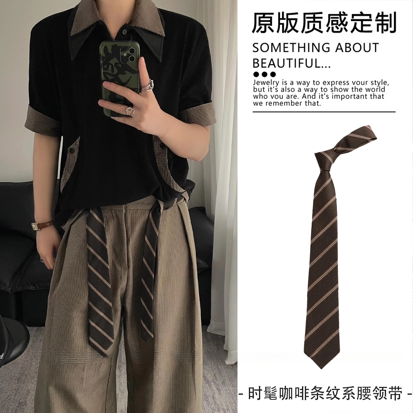 日系復古咖色條紋系腰領帶高級感腰帶時尚百搭配飾小眾褲帶女新品