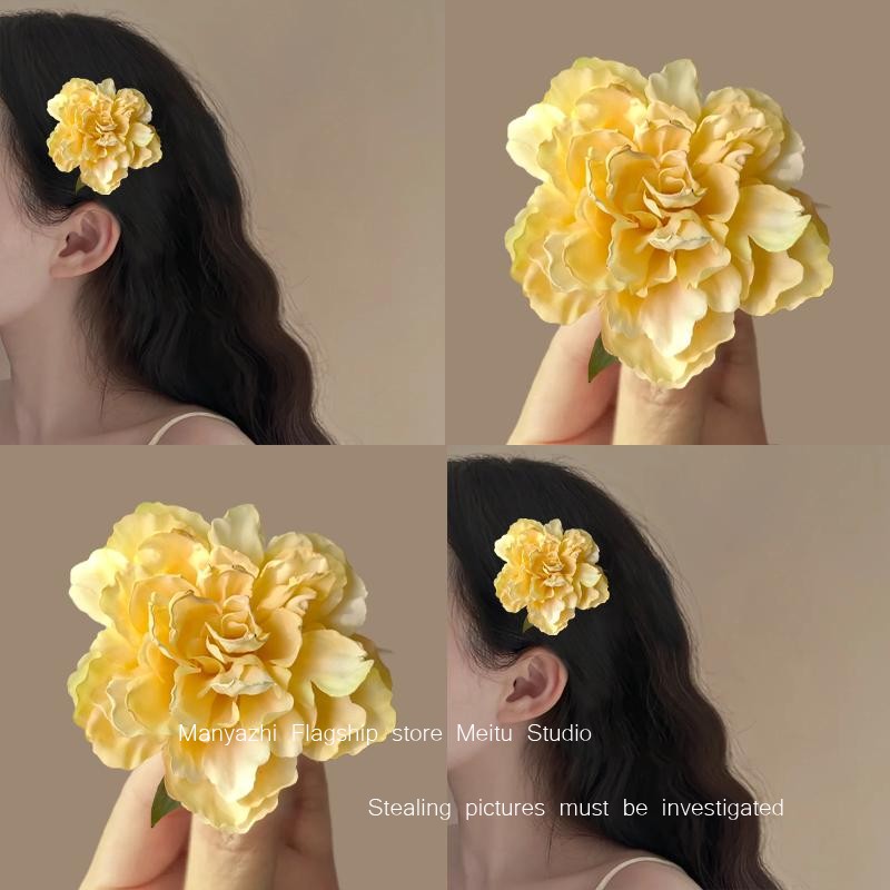 法式復古~牡丹花鴨嘴夾度假氛圍感側邊夾子森系花朵發夾發飾