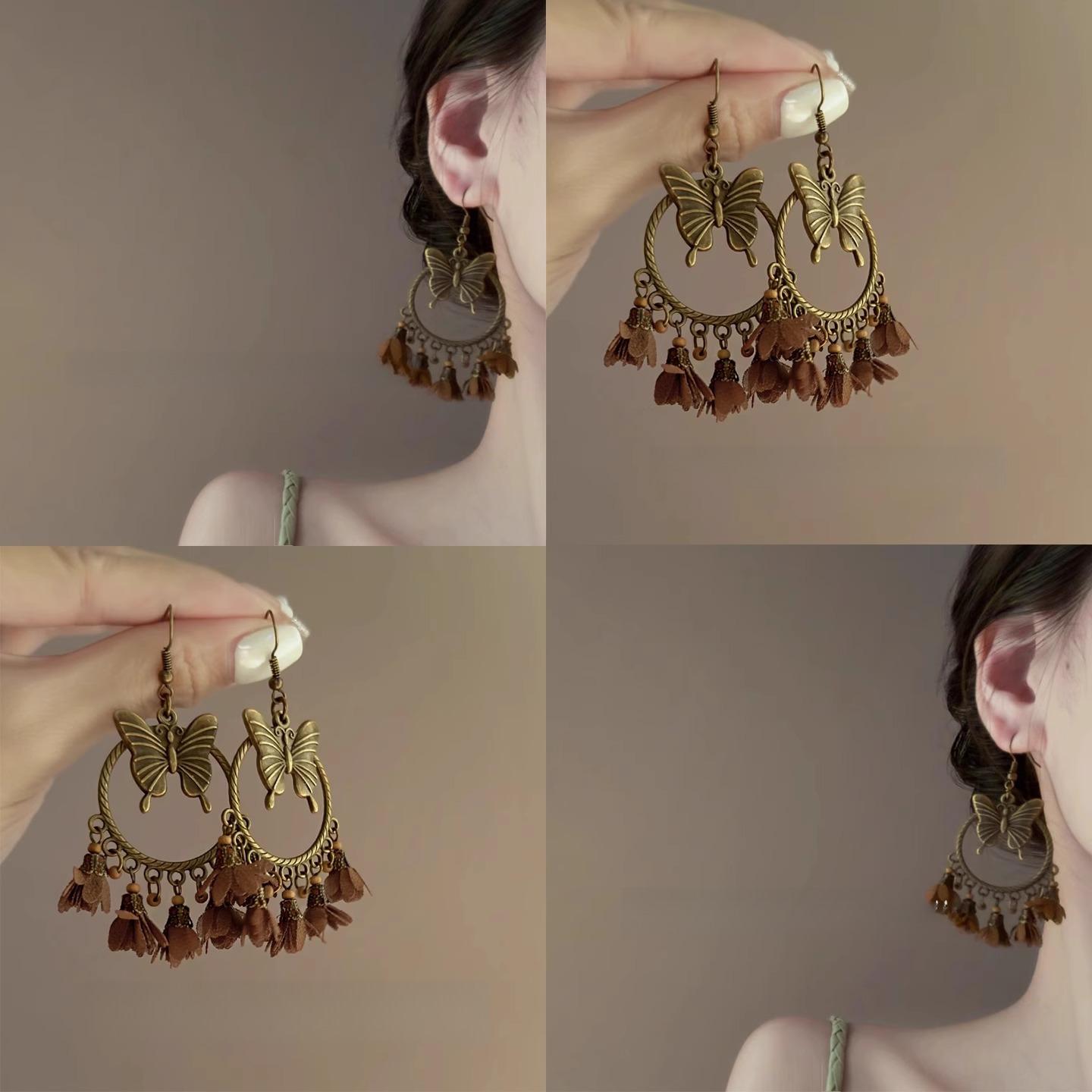 塞外枯蝶!復古蝴蝶流蘇耳環!高級感小眾氣質波西米亞耳釘耳飾品