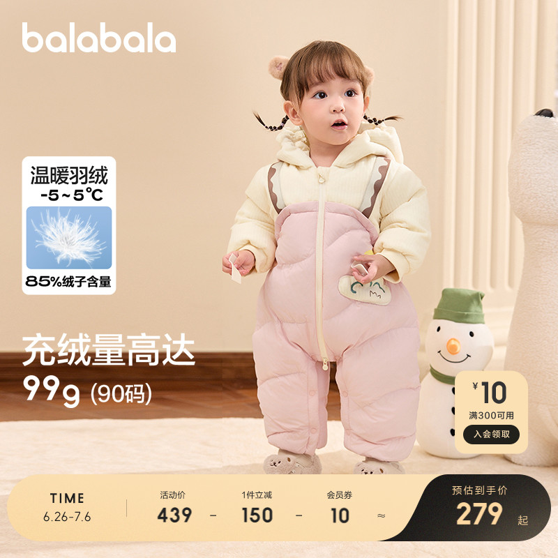 巴拉巴拉嬰兒羽絨連體衣女童加厚爬服寶寶外出服兒童冬裝新款童裝