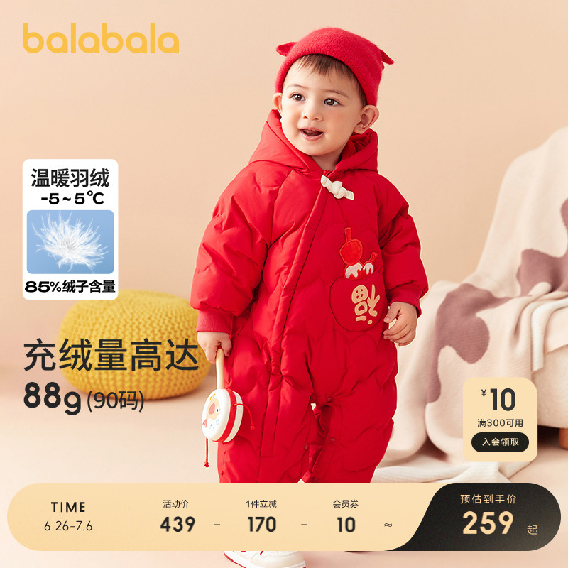 巴拉巴拉童裝嬰兒羽絨服連體衣外出寶寶衣服冬裝哈衣爬服萌趣時尚
